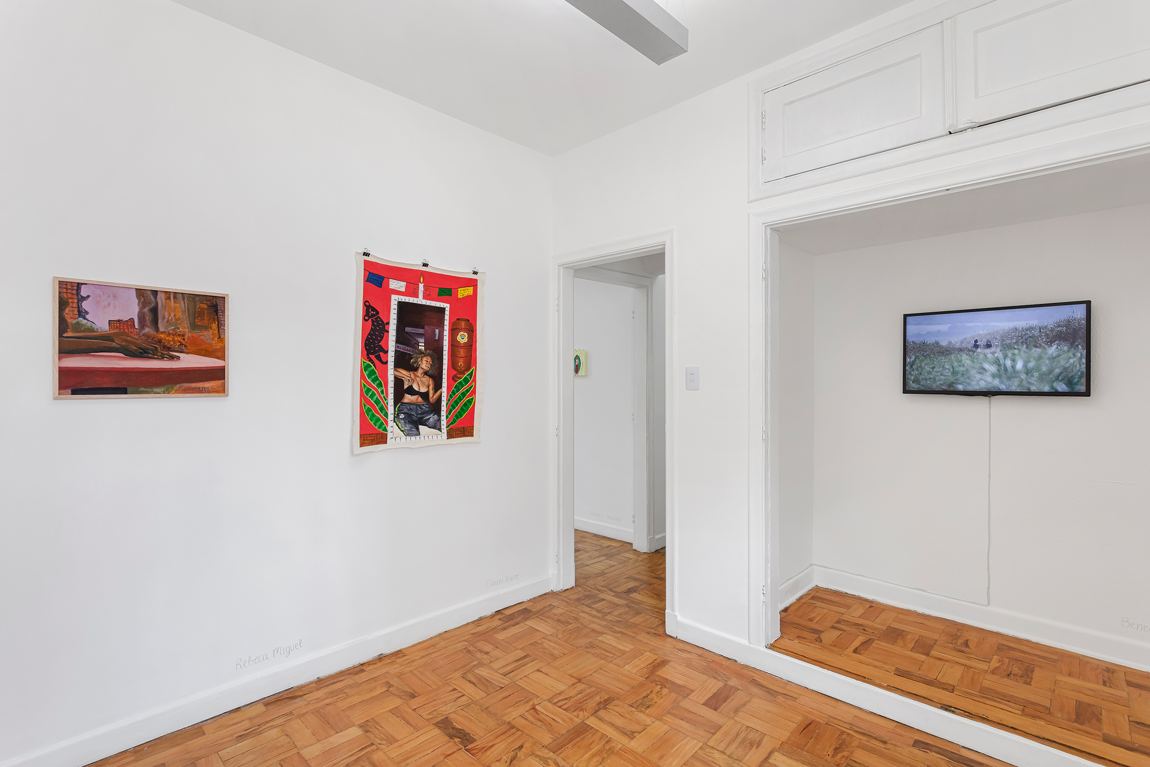 No primeiro caso, o verso de Horizonte Azul convoca uma imaginação de partida e reencontro. A imagem do horizonte como promessa, iluminado por cores que se alternam entre o dia e a noite, estrutura um desejo de retornar a um lugar que já não existe como tal. Trata-se de um gesto de mirar o longe para tentar recompor o que se perdeu. No espaço expositivo, essa paisagem sinestésica ganha corpo como projeção afetiva, um campo de expectativa suspensa entre o que se lembra e o que se deseja reencontrar.