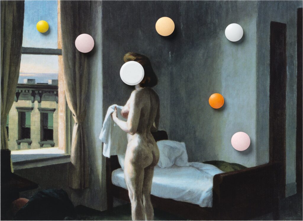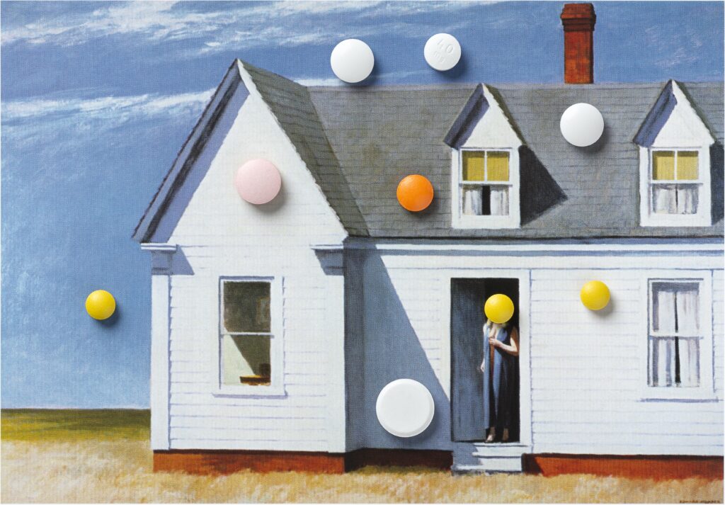 I arrange my grandmother’s medications over images of works by Edward Hopper published in a hardback book. Each new combination of pills and image marks a moment in the progression of Alzheimer’s and in the shifts within our daily relationship. The photographs follow the period from the first prescriptions to her death in 2023, forming a sequence in which care, memory, and loss are inscribed on the surface of the images.
