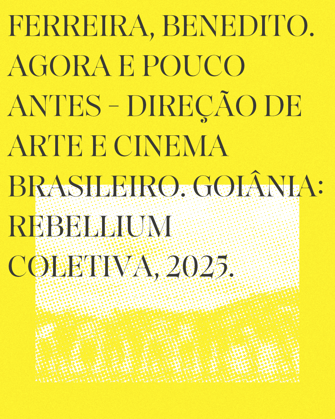 Agora e Pouco Antes: Direção de Arte e Cinema Brasileiro investigates the role of production design and art direction in Brazilian cinema, focusing on the emergence of the first credits for the function and its implications for film visuality. The book outlines areas of practice, intersections with other disciplines, and discussions on authorship, proposing fabulation as a field of experimentation and invention. Resulting from more than a decade of research, it brings together fiction feature films that highlight processes of visual construction and ways of materializing the scene. The publication was edited by the Rebellium Coletiva imprint (Goiás), released in March 2025, and made possible with funding from the Lei Paulo Gustavo, a public cultural policy that enabled its realization.