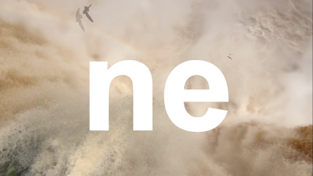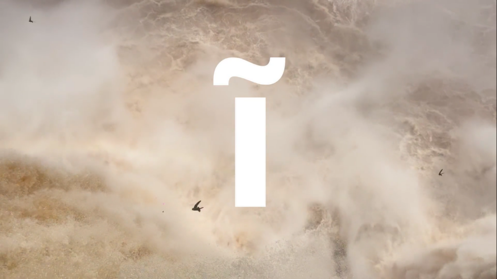 Sobre a paisagem das Cataratas do Iguaçu, na tríplice fronteira entre Brasil, Argentina e Paraguai, o alfabeto guarani, em letras minúsculas, atravessa as imagens e interfere na leitura das cenas. Ao incidir sobre o fluxo da água e o voo dos andorinhões-das-cascatas, aves emblemáticas que vivem e nidificam nas fendas e rochas úmidas atrás das quedas-d’água, o trabalho coloca em relação linguagem, território e percepção. Protegidas pela cortina de água contra predadores, essas aves podem ser vistas com frequência ao amanhecer e ao pôr do sol. Desse encontro emergem formas de existência que persistem para além das fronteiras oficiais.