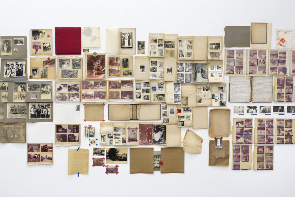 In The Bastard, I carry out a complete disassembly of photographic albums acquired in Latin American countries such as Brazil, Chile, Paraguay, Uruguay, Argentina, Bolivia, Panama and Mexico. From the discontinuous pages of these albums, I construct a narrative path into which I insert a single “bastard” photograph, purchased in the United States and belonging to another history, which comes to inhabit this dismantled collection. The montage, combined with the use of theater lighting gels, stickers, small framed photographs and hanging ornaments, provides clues to the intrusive and corrupted presence, emphasizing the tension between belonging and displacement that structures the work.