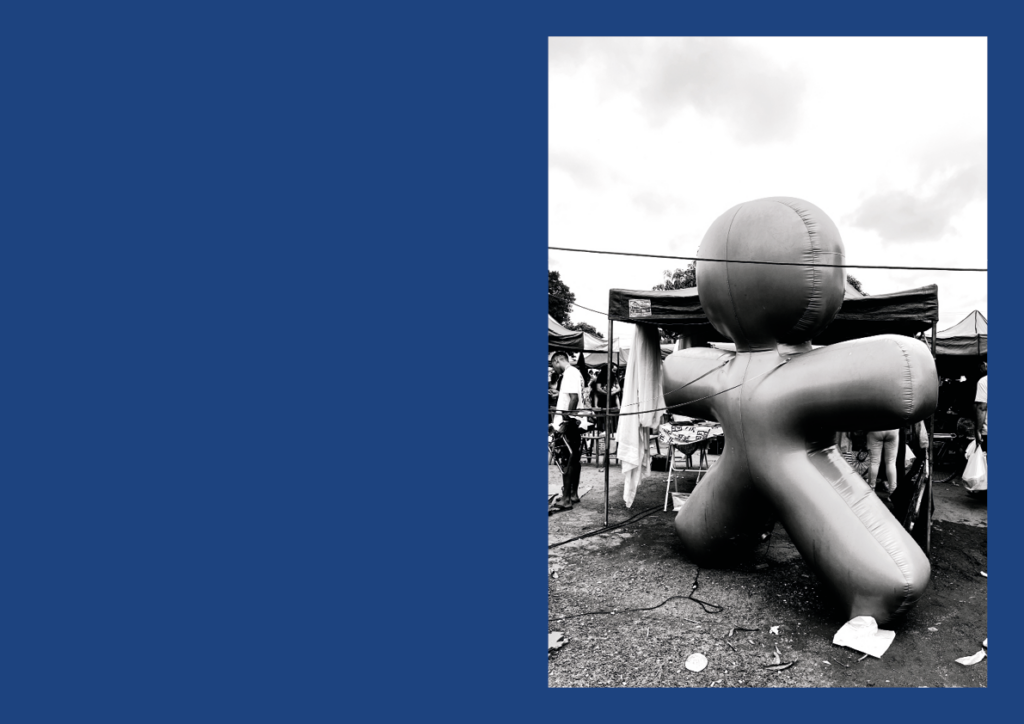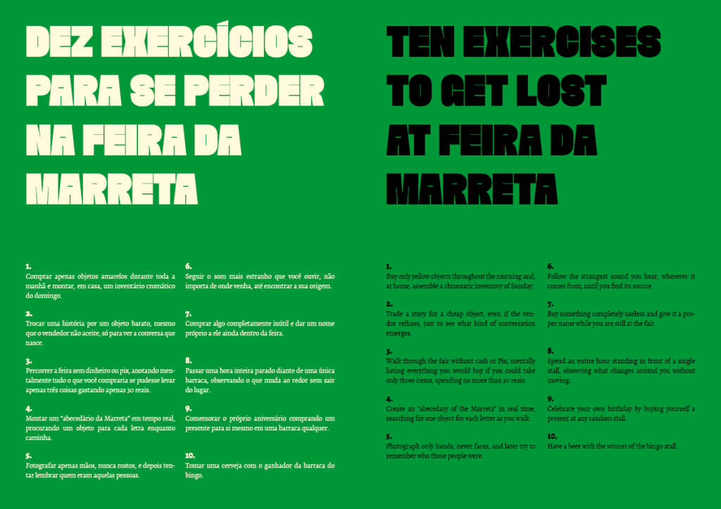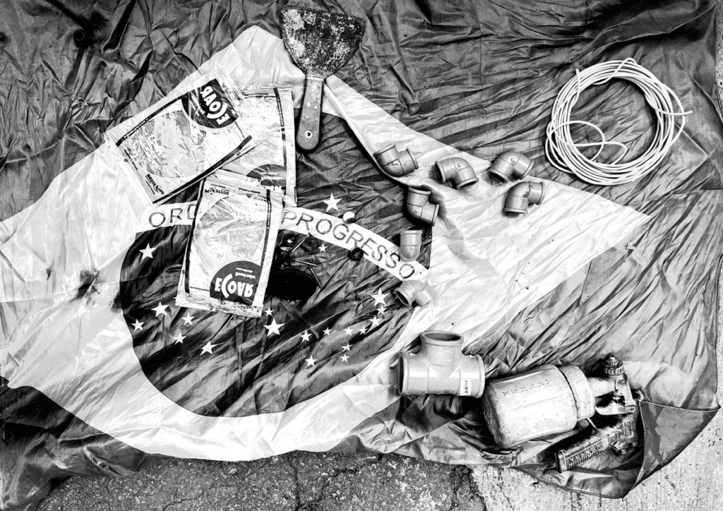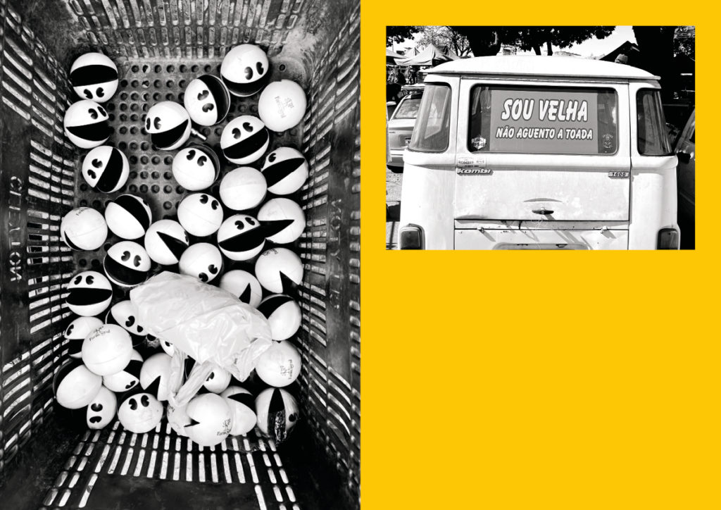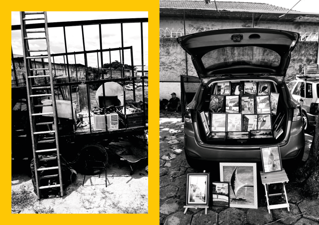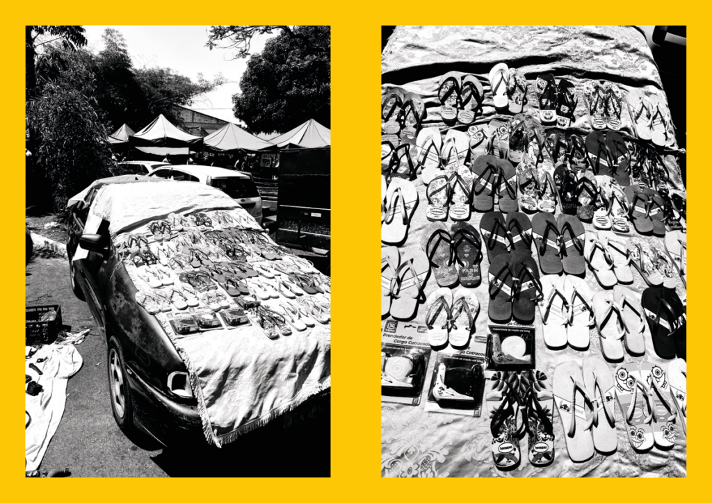 Telhado no Bolso [Roof in the Pocket] investigates the city through walking, direct observation, and contact with precarious forms of urban circulation and labor. Developed at the Feira da Marreta in Goiânia, it brings photography and writing together as inseparable practices, treating the image not as a closed document but as material in transit—shaped by chance encounters, remnants, displaced objects, and small everyday narratives. The title evokes the idea of a mobile, provisional shelter, a “roof” carried along, pointing to informal ways of inhabiting the city and to economies of improvisation. The research unfolds through a set of public actions that challenge conventional formats of exhibition and mediation. These include open-studio encounters, in which the public gains access to works in process, photographs, notes, and the artist’s archives, as well as portfolio reading sessions aimed at emerging artists and photographers. Added to these actions is the online release of a digital notebook that gathers images and texts produced during repeated wanderings through the fair, asserting itself as a space for editorial experimentation and drift. Taken as a whole, Telhado no Bolso proposes an artistic practice grounded in the sharing of processes, attentive listening, and a focus on the micropolitics of the urban sphere.